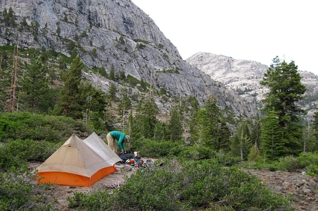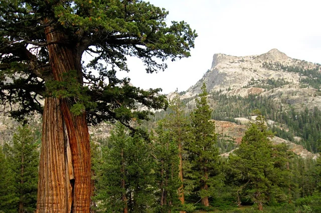 We had second breakfast at the top of the hill with TwoBadDogs near an alpine lake. The mosquitoes weren't quite as bad here with a breeze, but they were still irksome. Katie and I joked that we wouldn't have any recollection of this part of the trail because we moved so quickly through it, trying to escape the bugs each and every day. We barely even had any photos of Yosemite; stopping for a photo was simply inviting the mosquitoes to bite. We clicked pictures as we ran through the landscape, promising ourselves we'd look at them later, even if we didn't remember seeing any of it. My bug headnet was now a staple of my daily wardrobe; I put it on first thing in the morning and wore it until I fell asleep. I was starting to hate Yosemite and its bugs.