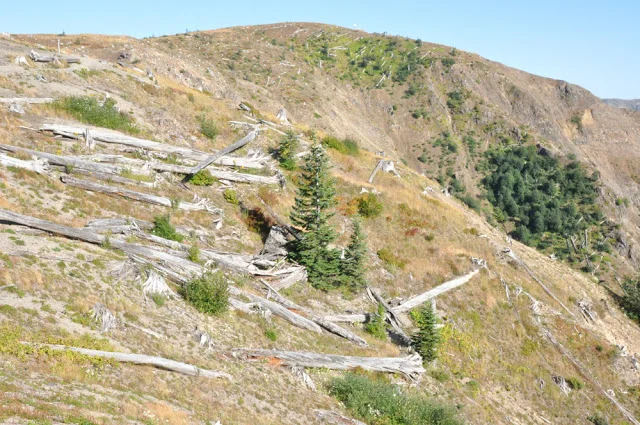 The mountain itself must have been so grand, once; the photos from the visitor's center showed it looking remarkably like Mt. Hood, with a proud, pointed cap covered in snow. Now, the entire north side of the mountain has disappeared, turned into a giant avalanche which destroyed Spirit Lake below, created new lakes in its wake, and erupted with a force that sent its smoky plume more than 15 miles into the air.