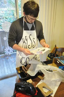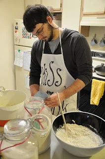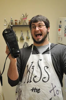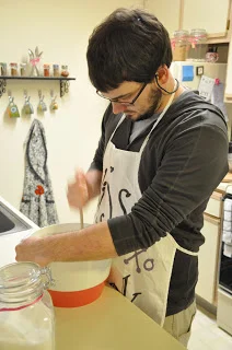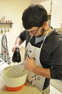Cream the butter and sugar together in an electric mixer. I like call my mixer "Tanner." He was doing this by hand to begin with, but then remembered his mom gave him an electric mixer a while back, and the prospect of using a power tool to make cookies was too enticing to ignore. Needless to say, things got creamed in quite a hurry after that.