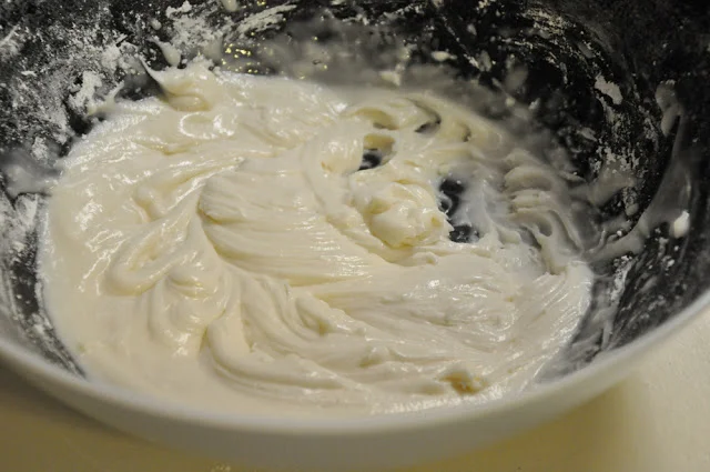 This actually makes a lot of frosting, so if you're not a frosting person, you might consider cutting back the recipe. We piled it on and still had a lot left over.