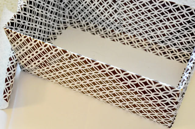 I also recommend pulling the paper as tightly as you can, or perhaps gluing it down as you go, otherwise it will catch air when you try to put the lid on and be a little billowy.